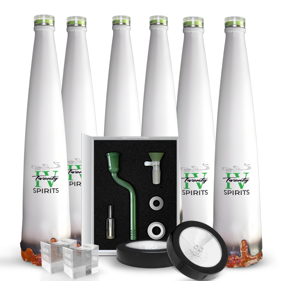 The ultimate party starter. With six bottles of IV20 and a full arsenal of smoking accessories, this mega-bundle has everything you need to host, toast, and roast in style.